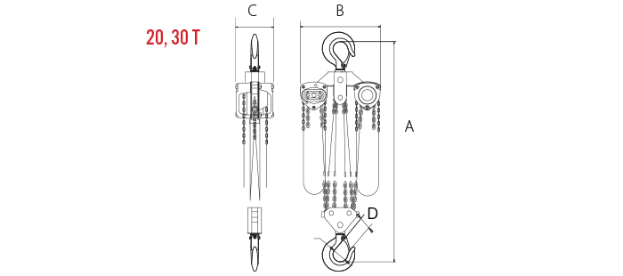 20 Ton Hand Hoist x 10Ft. Lift (8Ft. Hand Chain Drop)