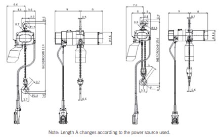 - Compact design with low headroom, net weight of the hoists range from 32 lbs. with a standard 10 lift