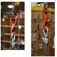 STEP 1 : Place sling into bowl of measuring hook. Make sure there are no kinks or twists in chain legs. If the sling is equipped with shortening hooks / clutches, make sure they are disengaged and legs hang free. |