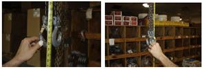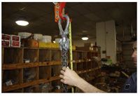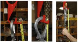 STEP 4 : Measure the bearing of the sling. This can easily be done at eye level by raising the hoist hook. Because the sling is hanging vertically, the measurement will be more accurate than those taken while the sling is laying on the ground. Also, the measurement can be easily done by a single person in a short time. ![]() |